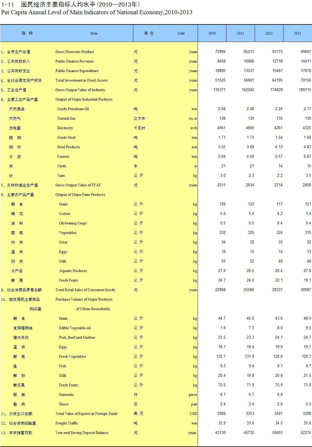 1-11 ������Ҫָ���˾�ˮƽ(2010-2013��)