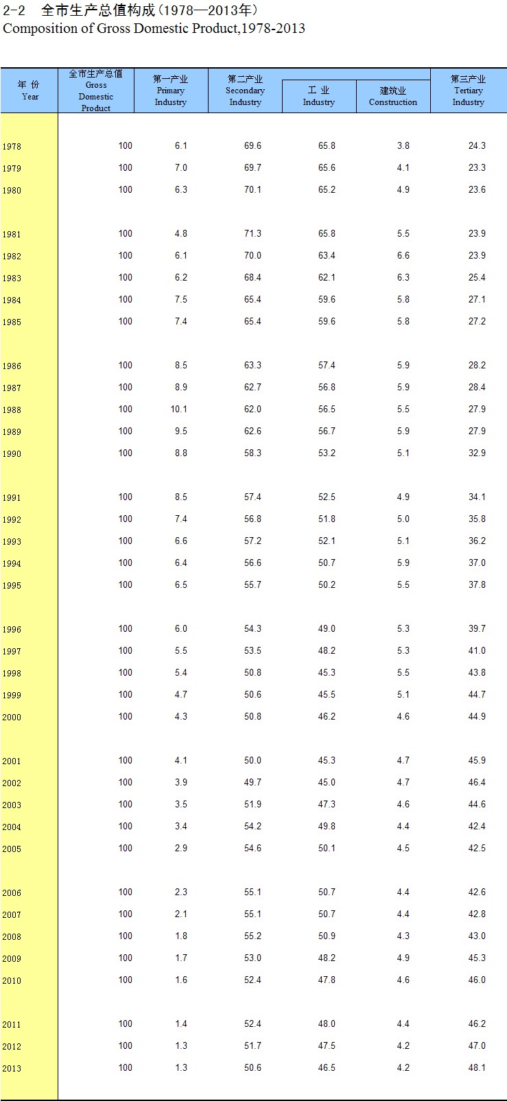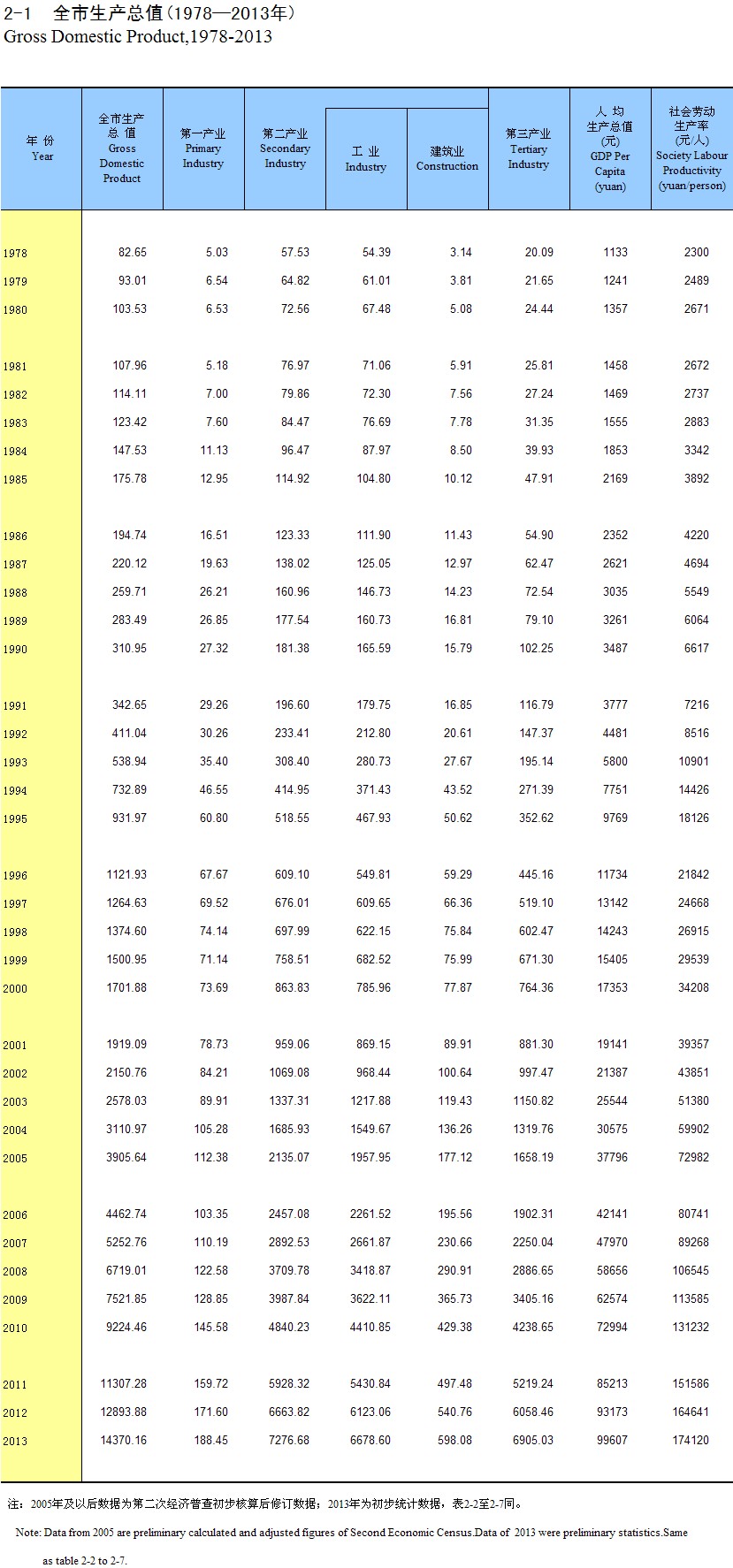 2-2 ȫ��������ֵ����(1978-2013��)