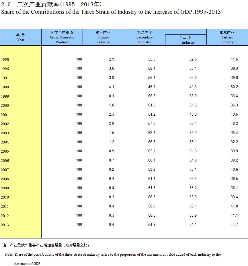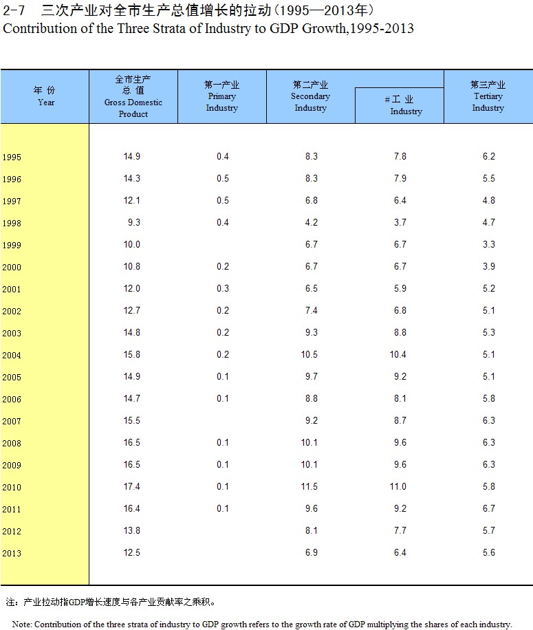 2-7 ���β�ҵ��ȫ��������ֵ����������(1995-2013��)
