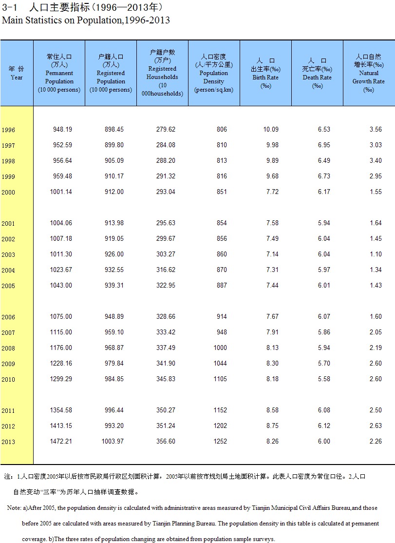 3-1 �˿���Ҫָ��(1996-2013��)