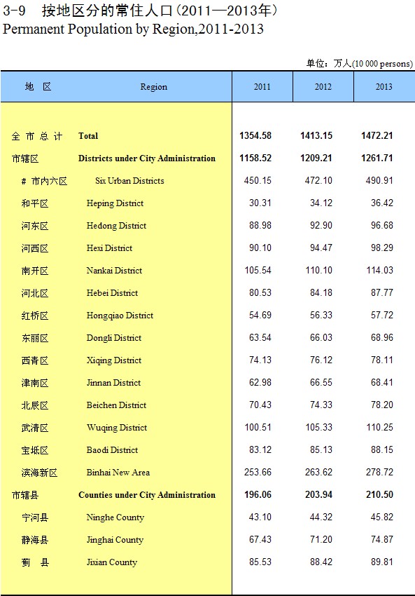 3-9 �������ֵij�ס�˿�(2011-2013��)