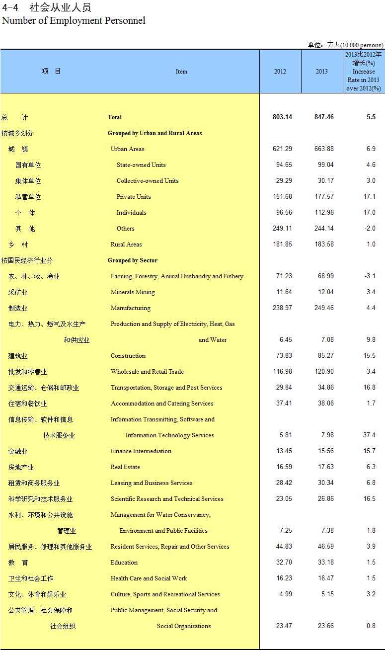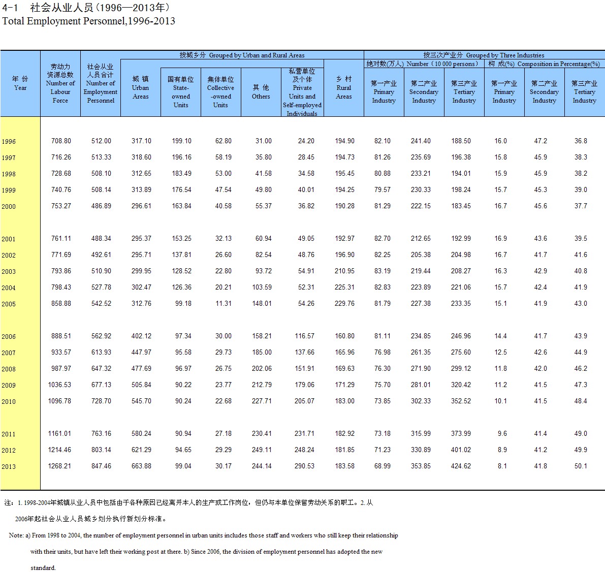 4-1 ����ҵ��Ա(1996-2013��)