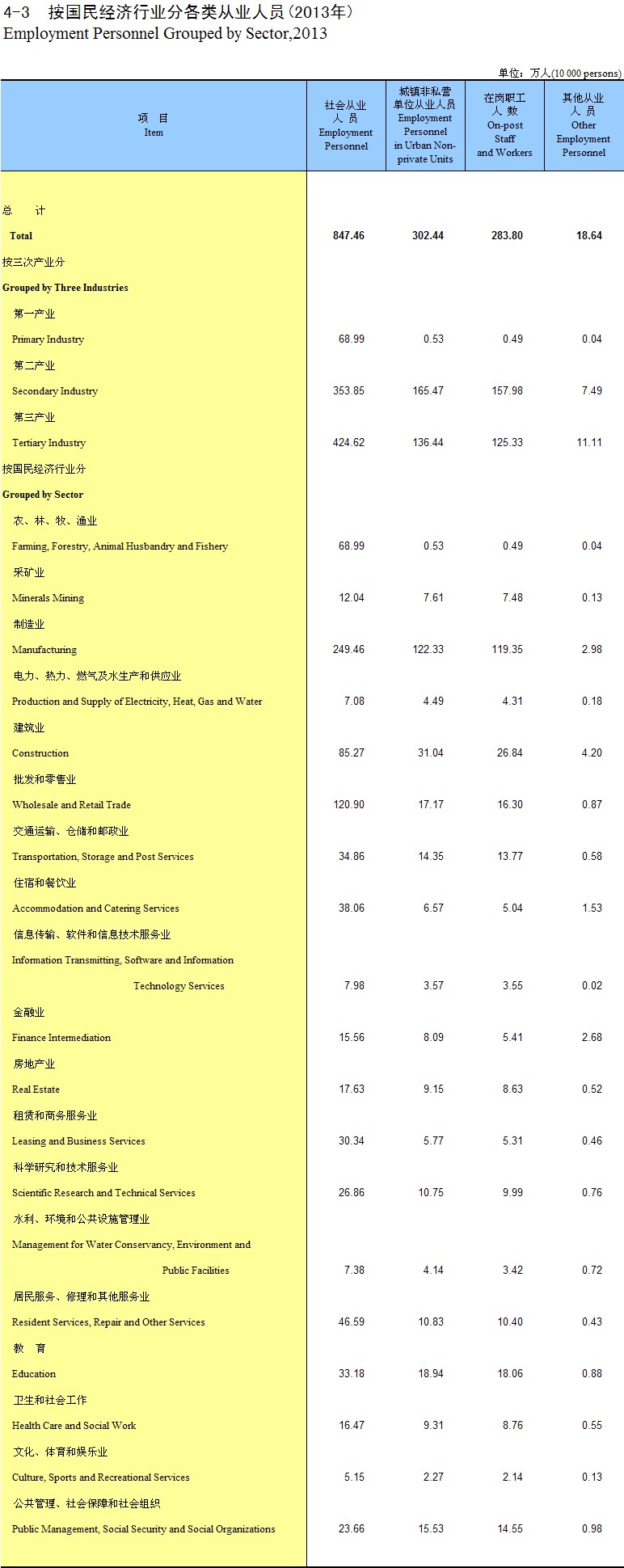 4-3 ��������ҵ�ָ����ҵ��Ա(2013��)