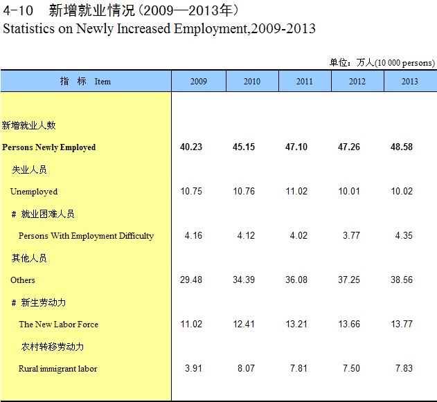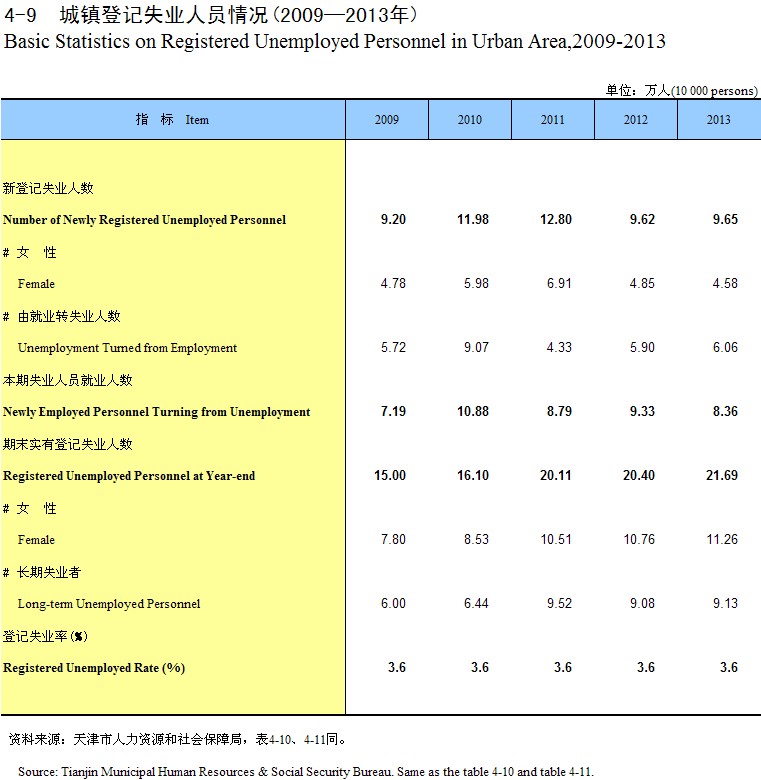 4-9 ����Ǽ�ʧҵ��Ա���(2009-2013��)