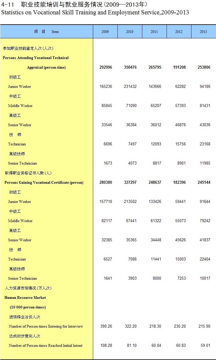 4-11 ְҵ������ѵ���ҵ�������(2009-2013��)