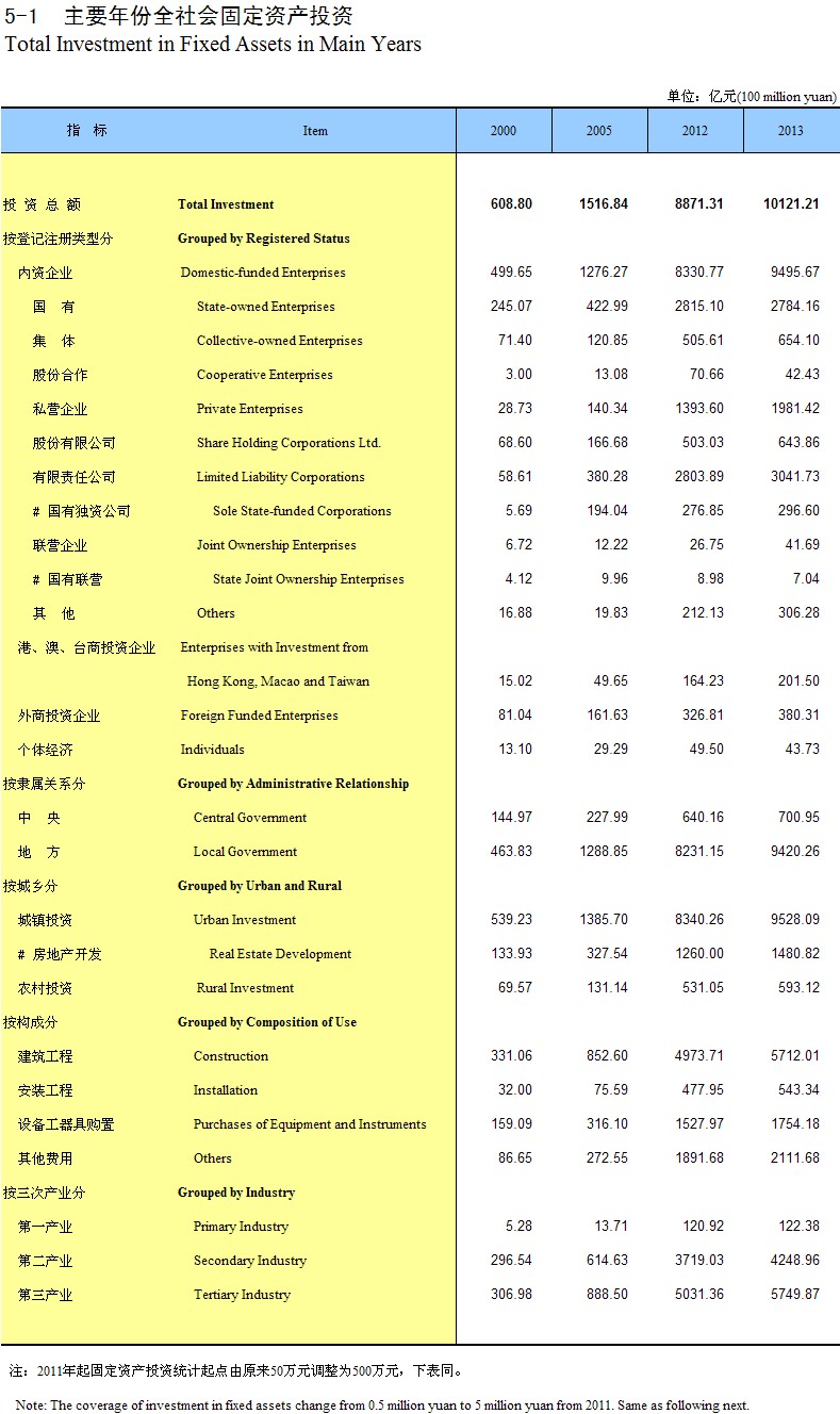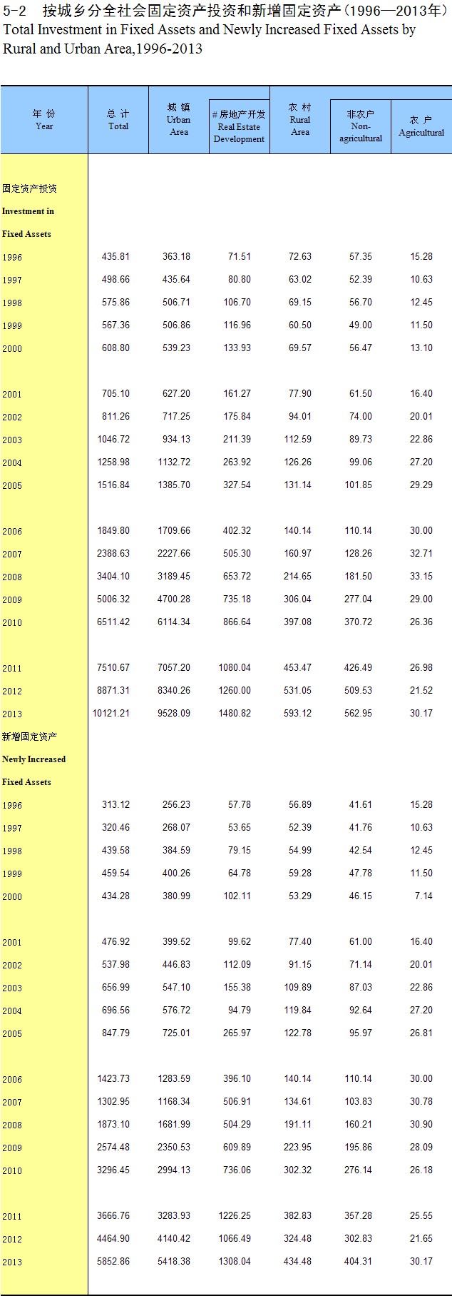 5-2 �������ȫ���̶��ʲ�Ͷ�ʺ������̶��ʲ�(1996-2013��)