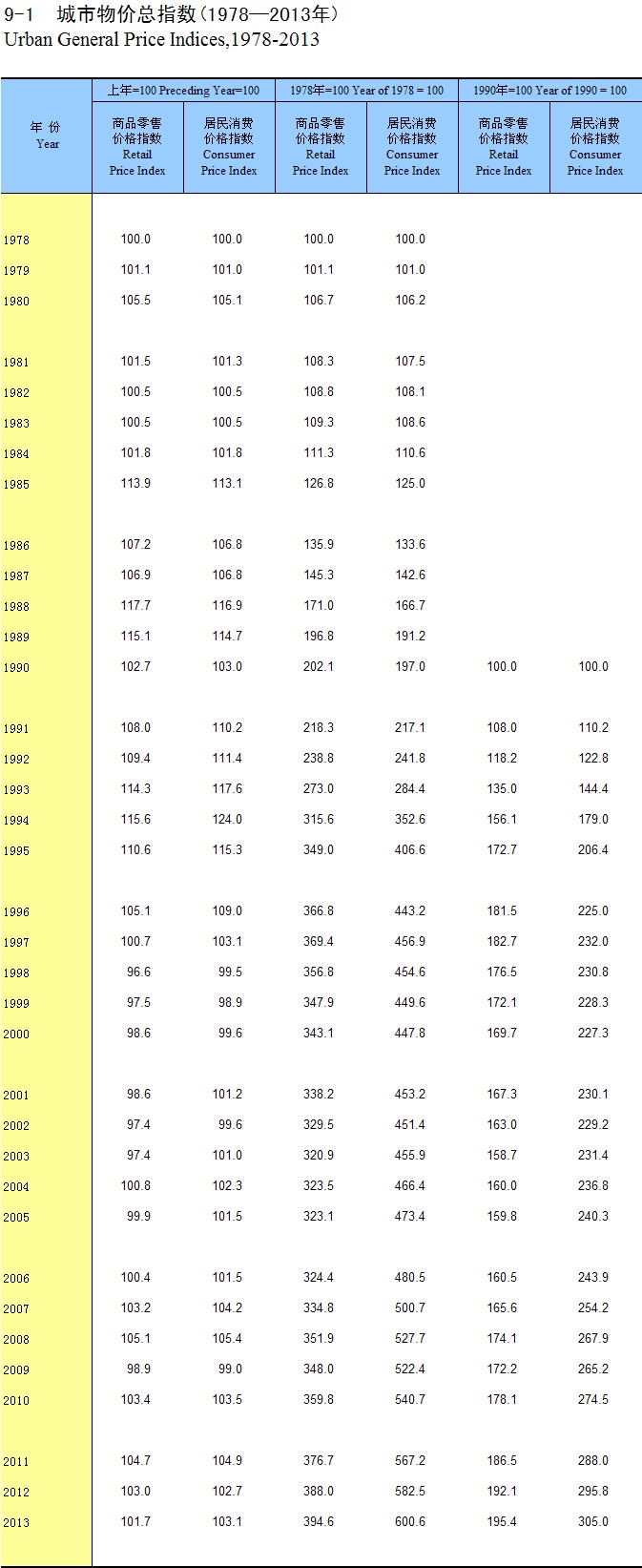 2-1 ȫ��������ֵ(1978-2013��)