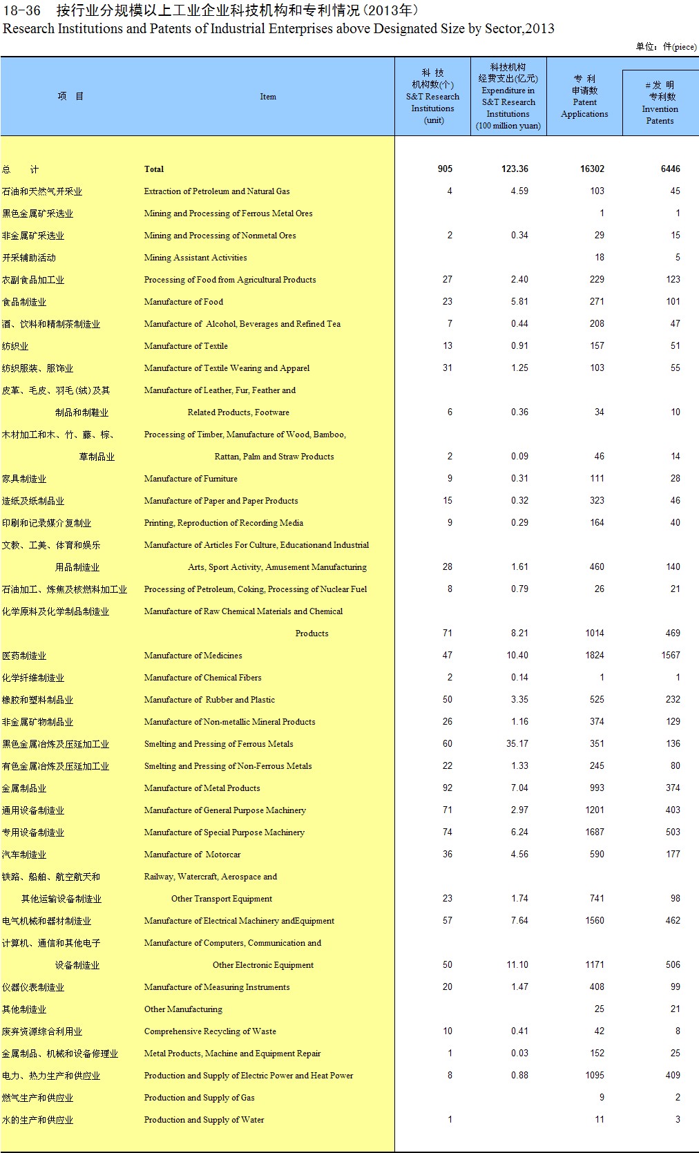 18-36 ����ҵ�ֹ�ģ���Ϲ�ҵ��ҵ�Ƽ�������ר�����(2013��)